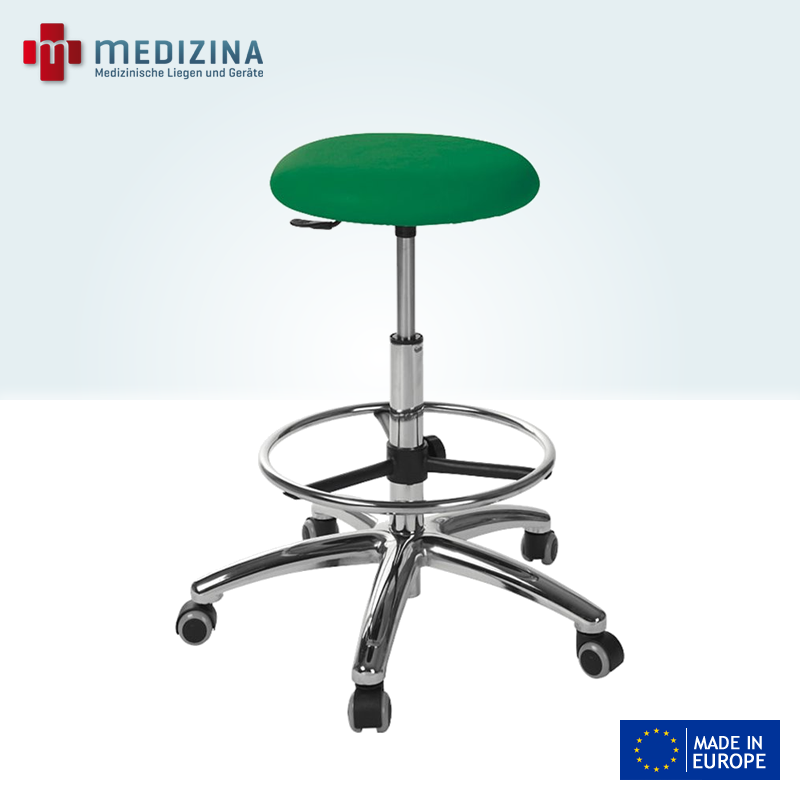 Der Drehhocker hat ein 5-Sternekreuz aus Alumium und einen Rundsitz mit einem Durchmesser von Ø 40 cm, welcher eine maximale Hubkraft von 120 kg ermöglicht. Dieser höhenverstellbare Drehhocker ist ein Hochwertiges Qualitätsprodukt "Made in Europe" & nach der Medizinischenproduktverordnung (EU) 2017/745 (MDR) hergestelt.