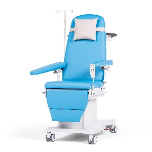 Diese neu entwickelte Behandlungsliege verbindet die Leistungsfähigkeit hoch technisch ausgestatteter Liegen mit kompakter Form. Einfacher Einstieg, leichtgängige Rollen, verständliche Funktionen, stufenlos motorisierte Bewegungsabläufe in die Wunschposition, angenehme Armstützen und freundliche Farben der komfortablen Polsterung geben der Liege ihr Gesicht. Patientenkomfort, Ergonomie und Effizienz stehen im Mittelpunkt, wenn sie Patienten bei der über Stunden andauernden Chemotherapie beste Behandlungsbedingungen bietet.